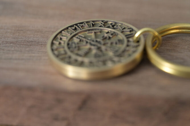 Personalized brass Viking compass/Nordic compass keychain. Minimalist retro style. Made from high-quality brass. Item is manually finished in deep engraving. Two-side engraving. Wholesale available.